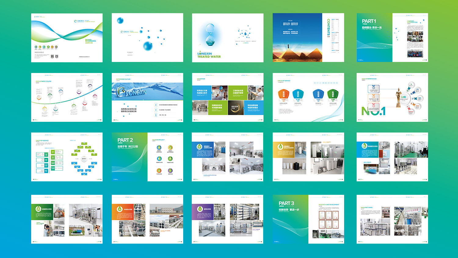2018年我们为龙新净水重新策划设计了其公司的系列画册,包含总册、直饮水分册、酸化水分册、医院分质供水系统分册。