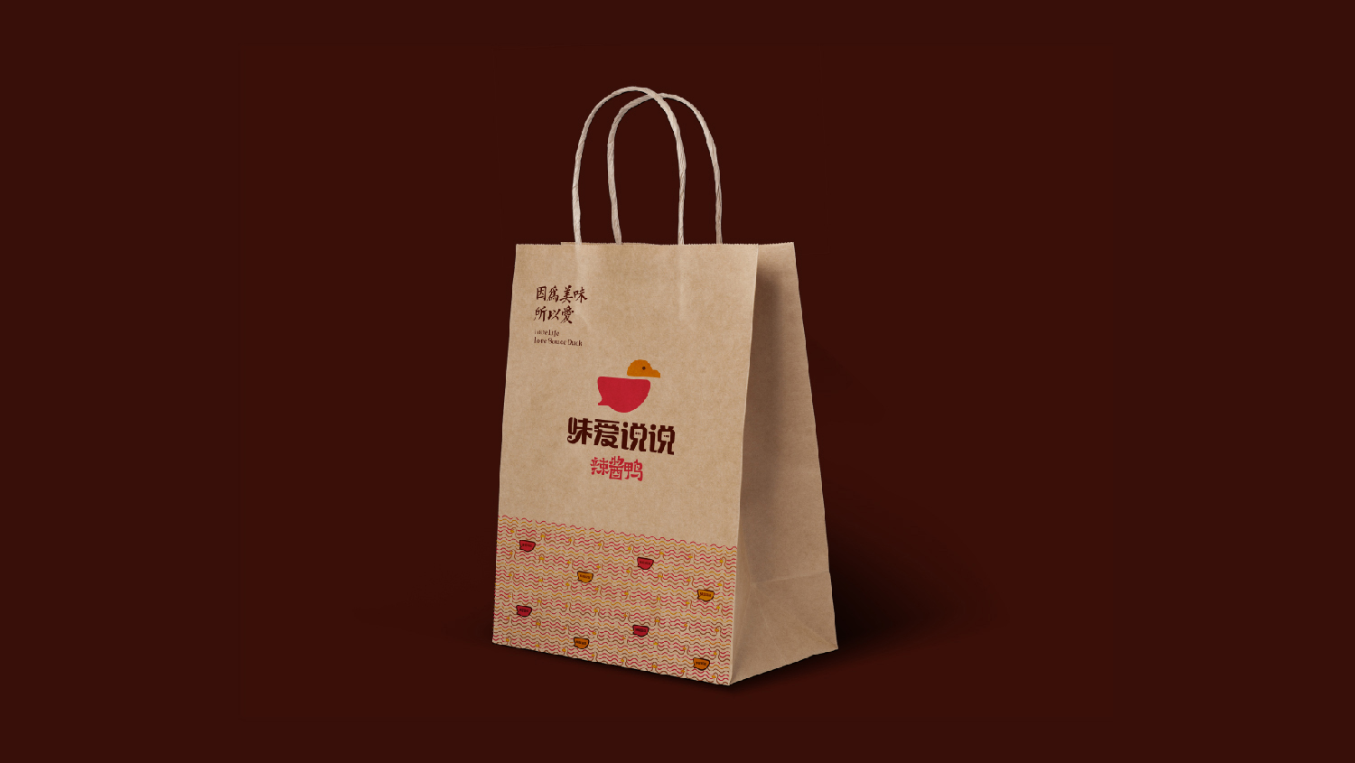 味爱说说品牌创立于2018年,品牌味爱说说产品主要有湖南酱板鸭,辣鸭舌,无骨鸭爪,鸭排,香辣鸭爪等。爱需要说,美味需要说,我们用一个简约的对话框与鸭的形态结合,创造出一个时尚年轻的图形符号,更符合新一代的消费者审美。